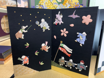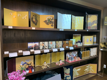The Kataoka Byobu Store continues to deliver seasonal byobu to doll wholesalers nationwide. But in addition to these conventional byobu, in consideration of the present housing situation in Japan, it also creates and sells compact, new styles of festive byobu.