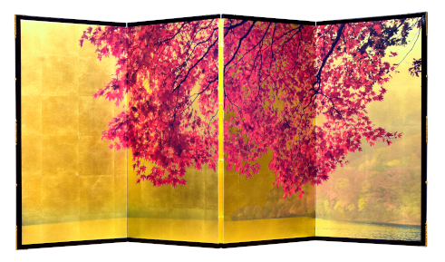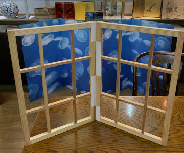 This practicality widens the range of options available to the owner of a byobu wondering where to place an artistic screen. For example, if someone wants to hide the entrance from the dining room to the kitchen (often directly linked in Japanese housing), they can place a screen with a likable picture there and use it as a nice blind. Unlike paintings hanging on a wall, a byobu is freestanding, so there is no need to screw holes in a wall.