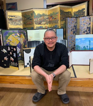 The Kataoka Byobu Store was founded in 1946. Mr. Koto Kataoka, whom I spoke with, became representative director and president of the company last year and is the third-generation owner of the store. Mr. Kataoka studied in the United States, so he is fluent in English. This English proficiency enables him to engage directly in overseas transactions and respond to foreign customers.