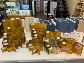 As I listened to Mr. Kataoka’s talk and gazed at the various large and small byobu on display in the showroom, my interest gradually grew, and I found myself dreaming more and more about what byobu I myself would like and where I would place them. Byobu combining both beauty and functionality are generating new usage. For example, they could be used as a stage prop in the background of a YouTube video, or maybe you could carry around a small byobu for use as a selfie background.